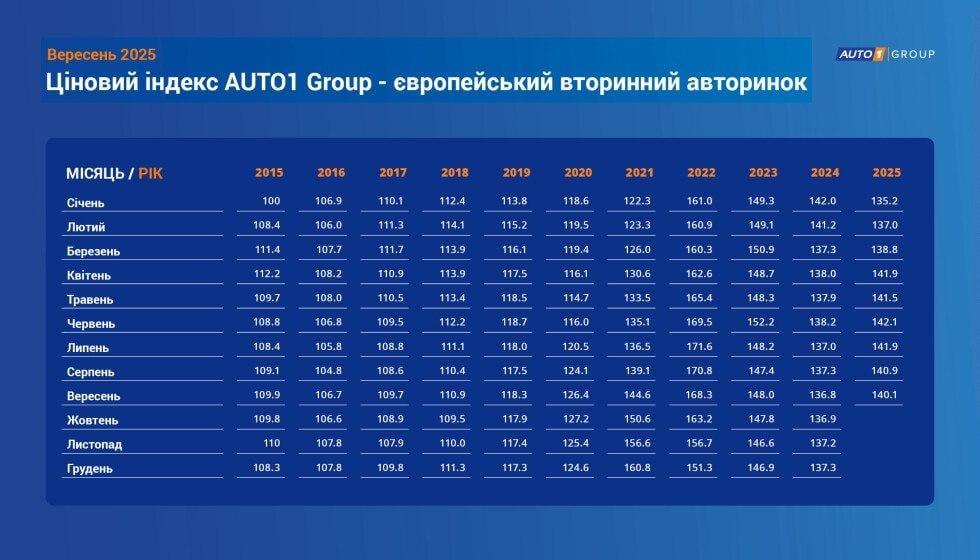 В същото време, от началото на 2025 г., индексът показва ръст от 3,6%, като се е повишил от 135,2 през януари до 140,1 през септември. В сравнение със септември миналата година, цените на употребяваните автомобили са се увеличили с 2,4%.