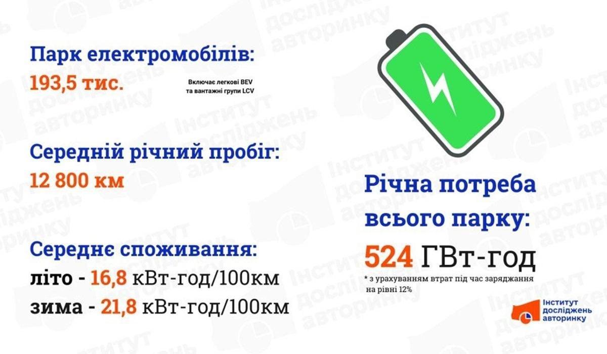 „Реалното търсене на енергия от мрежата от украинския парк от електрически превозни средства е приблизително 524 GWh годишно (тази цифра включва свързаните с нея разходи – УНИАН)“, отбелязват експерти.
