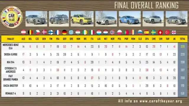 Skoda Elroq спечели второто място на подиума с 220 точки, изпреварвайки с малка разлика Kia EV4, който завърши трети с 208 точки.