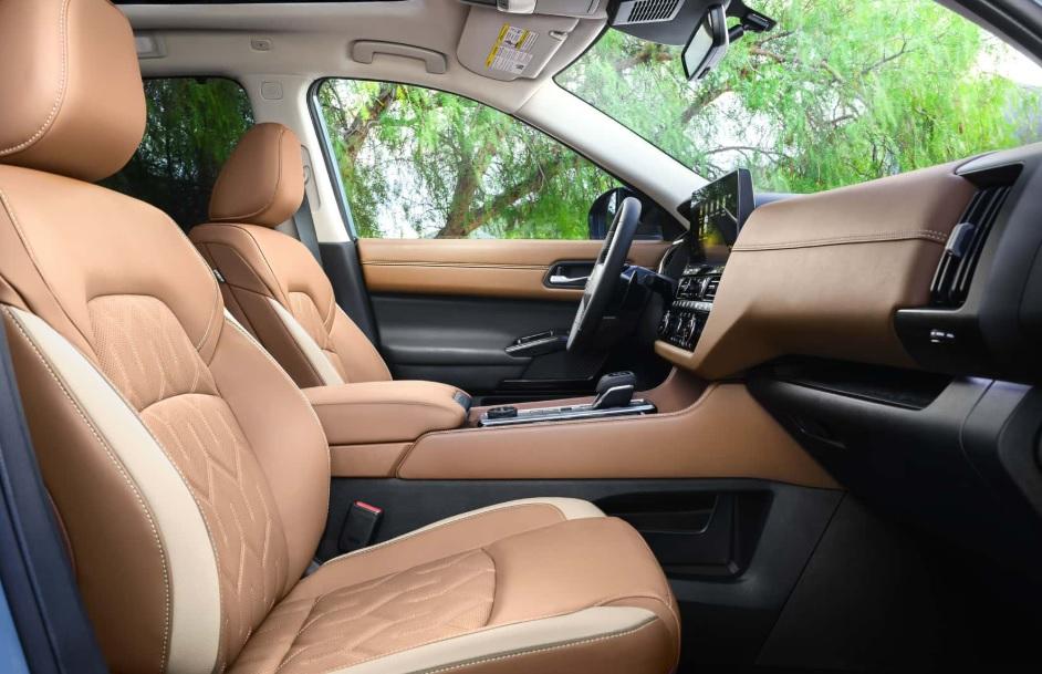 Моделът е получил преработени предна и задна брони, нови сатенени емблеми и цвят на екстериора Baltic Teal, информира Motor1. По-високите нива на оборудване вече са с черни релси на покрива. В интериора приборният панел е актуализиран с релефен надпис "PATHFINDER", а централният дисплей е уголемен.